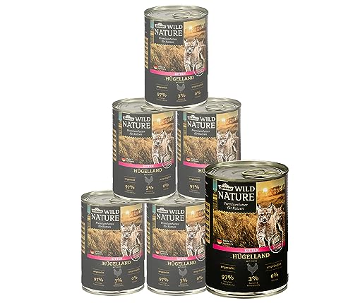 Dehner Wild Nature kattmat kattunge kullem, våtfoder spannmålsfri/sockerfri, för unga katter, kyckling, 6 x 400 g burk (2,4 kg)