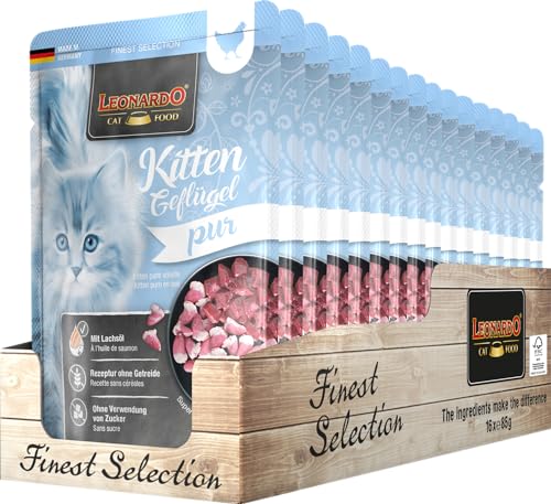 Leonardo Färsk påse [16 x 85 g kattunge fjäderfä] | Kornfritt våtfoder för katter | våtfoder helfoder i en portionspåse