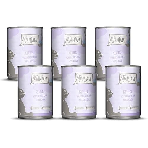 MjAMjAM - premium våtfoder för katter - kattunge utmärkt kalv med laxolja, förpackning om 6 (6 x 400 g), spannmålsfri med extra kött