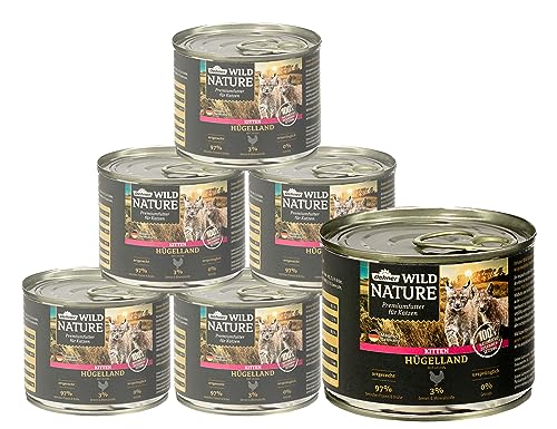 Dehner Wild Nature kattmat kattunge kullem, våtfoder spannmålsfri/sockerfri, för unga katter, kyckling, 6 x 200 g burk (1,2 kg)