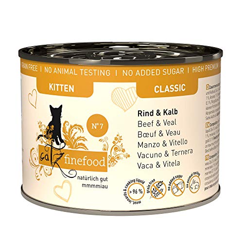 catz finefood Kitten nr 7 nötkött och kalv kattmat våt – fin mat kattunge våtfoder för unga katter, 6 x 200 g