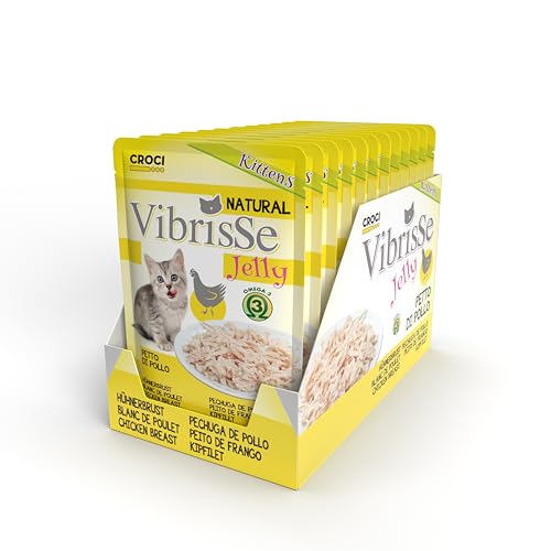 Croci Vibrisse kattunge, våtfoder i gelé, med kycklingbröst, lätt ångad mat, 18 x 70 g kuvert
