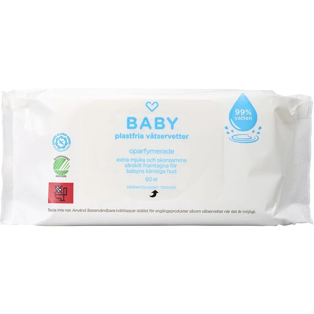 Hjärtats Baby Plastfria Våtservetter 99% vatten Oparfymerade 60 st