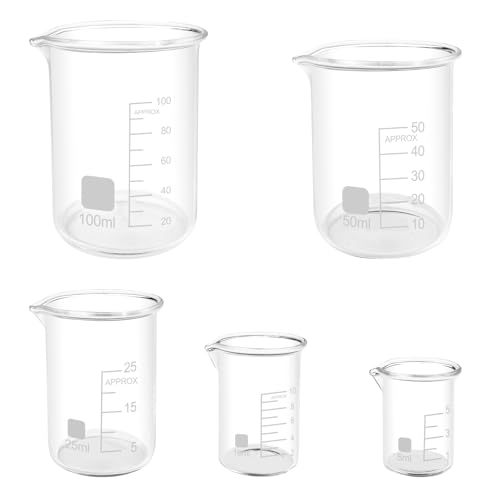 Lixiluxia 5 st. graderad glas, 3,3 borosilikatglasbägare, graderad vätskebehållare, laboratoriumglas, graderad bägare i 5 storlekar 100 ml 50 ml 25 ml 10 ml 5 ml