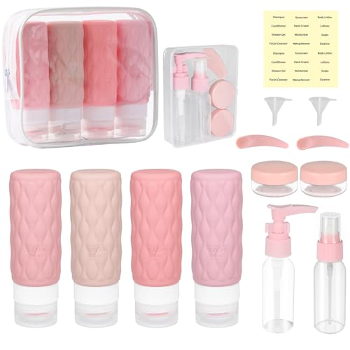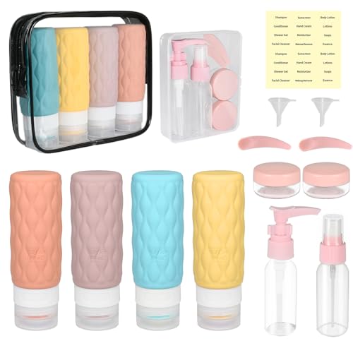 YoHyien 16 Stycken Silikonresorflaskor för Toalettartiklar 100 ml, Påfyllningsbara Reseflaskor Set, Läckagesäkra Squeezable Vätskebehållare, BPA-fria Resestorleksaccessoarer för Schampo och Balsam