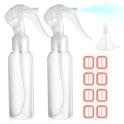 WLLHYF 2-pack små sprayflaskor 100 ml plast hårsprayflaska transparent tom reseflaska fin dimma vätskebehållare för salonger eteriska oljor vattensprutor