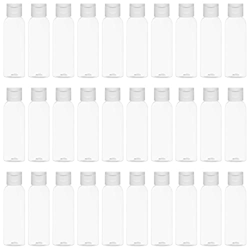 Belle Vous 30 Pack Klara Plast Flopp Kork Påfyllbara Flaskor – 60 ml Vätskebehållare – Återanvändbar Tom Tryck Kosmetika Flaska för Resor, Vatten, Kräm, Balsam, Artiklar och Schampo