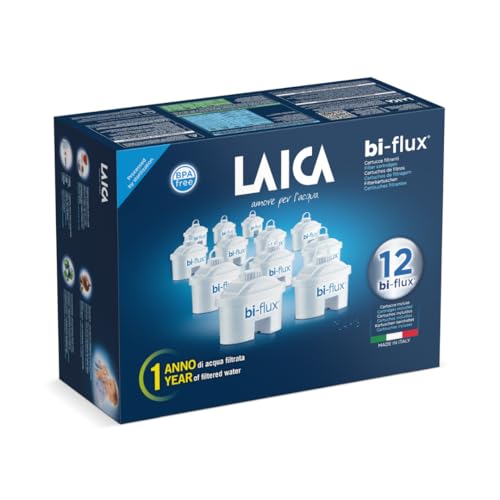 LAICA bi-flux® vattenfilter – bevarar de viktiga mineralsalterna för kroppen och minskar oönskade ämnen – 1 år filtrerat, välsmakande vatten (12 x 150 l filter) – Made in Italy