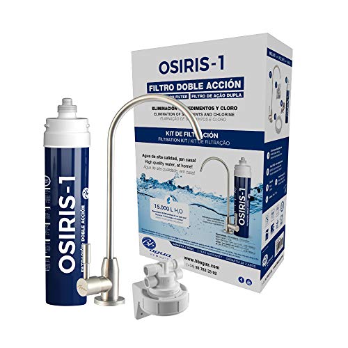 Dubbelverkande undervattenfilter med kran. Osiris-1. Inkluderar filter. Enkel installation och underhåll. Minskar klor, smaker och lukt från vatten. Bbagua.