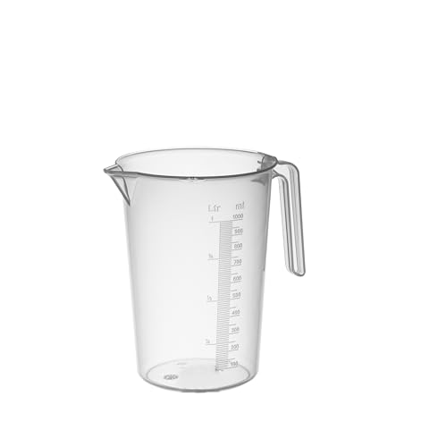 PIAZZA Professionell graderad plastkanna med öppet handtag, kapacitet 1 L, kanna för vatten och matvätskor - graderad mätkopp för att väga mat med köksvåg, tillverkad i Italien