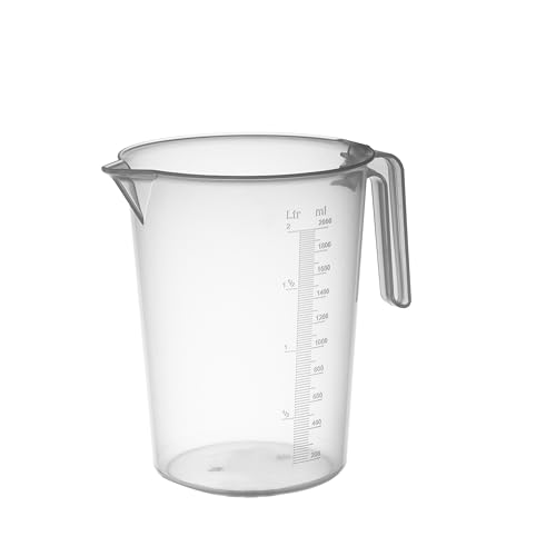 PIAZZA Professionell graderad plastkanna med öppet handtag, kapacitet 2L, kanna för vatten och matvätskor - graderad mätkopp för att väga mat med köksvåg, tillverkad i Italien