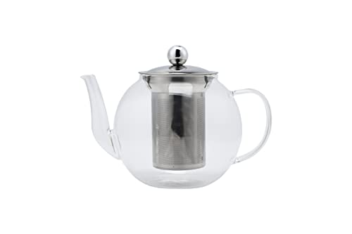 Echtwerk Tekanna, tekokare av borosilikatglas, silinsats och lock i rostfritt stål, värmebeständig, glaskanna lämplig för varma och kalla drycker som te, kaffe, vatten, silverutgåva, 1 000 ml