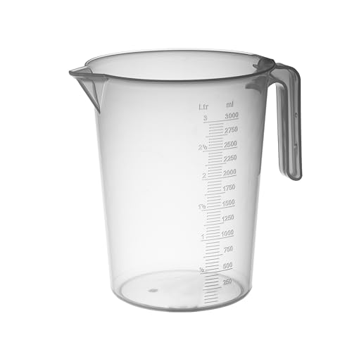 PIAZZA Professionell graderad plastkanna med öppet handtag, kapacitet 3L, kanna för vatten och matvätskor - graderad mätkopp för att väga mat med köksvåg, tillverkad i Italien