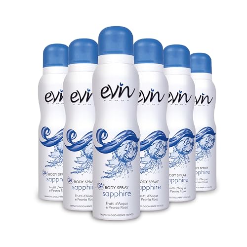 EVIN FEMME | Deodorant Sapphire Spray för kvinnor, doft med vatten och rosa pion, aktiv formel för 24 h, 6 x 150 ml