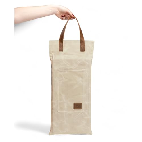 Livlig53 LIVLIG Knäkudde trädgård 45 × 22 cm, vattenavvisande knäkudde av vaxad duk med läderhandtag, trädgårdskvällkudde för trädgårdsarbete och hantverk, beige