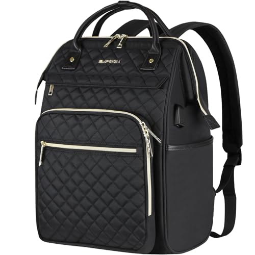 EMPSIGN Ryggsäck för 17-tums bärbar dator för kvinnor, arbete affärer resor dator högskoleväskor, stor kapacitet vattenavvisande quiltad vardaglig dagväska med USB-port, svart