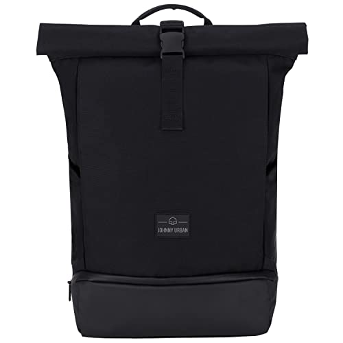 Johnny Urban Rolltop ryggsäck dam och herr – alla – dagryggsäck med laptopfack för universitet arbete resor – laptop ryggsäck med extra skofack – vattenavvisande, svart, Large (18 L), Avslappnad