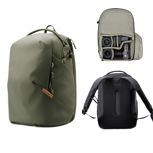 PGYTECH OneGo Lite kameraryggsäck 16 L-22 L, lätt vattenavvisande ryggsäck, fotografi för stad och resor med laptopfack, svart, grön, vit, Skog grön, 22 Lang