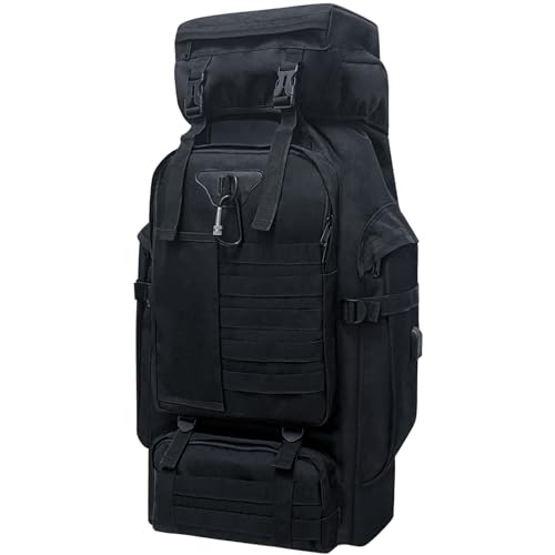Lizbin 80 l camping vandringsryggsäck, militär taktisk ryggsäck Molle-ryggsäck, extra stor vandringsryggsäck, vattenavvisande vandringsryggsäck, utomhussporter ryggsäck (svart)