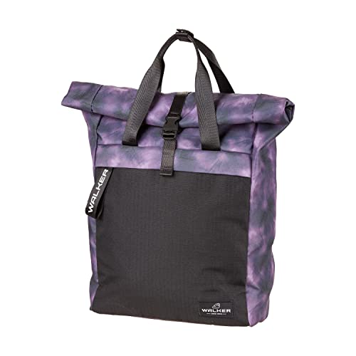 Walker 42263-259 – Ryggsäck rulltopp batik lila med huvudfack, laptopfack, sidoficka, ryggstoppning, spänneförslutning vattenavvisande, ryggsäck för skola, universitet, kontor och fritid