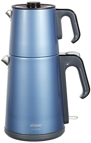 AR3080-O havsblå Cay Sefasi tekokare, 1650 W, 1,2 LT tekannas kapacitet, tekanna av rostfritt stål, 1,8 l vattentank, vattenberedning, vattenkokare, tefilter av rostfritt stål