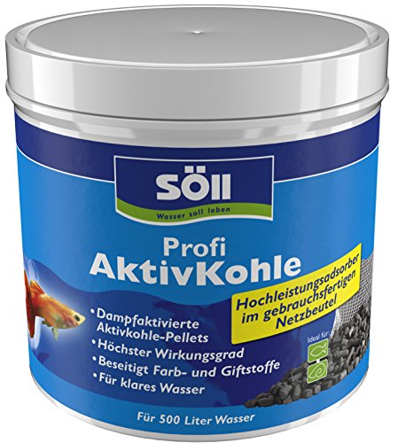 Söll 83309 Profi aktivt kol, 500 ml (i nätpåse, för 500 liter vatten) – vattenberedning med aktivt kol/adsorber av rent stenkol för att binda giftiga ämnen i akvarier