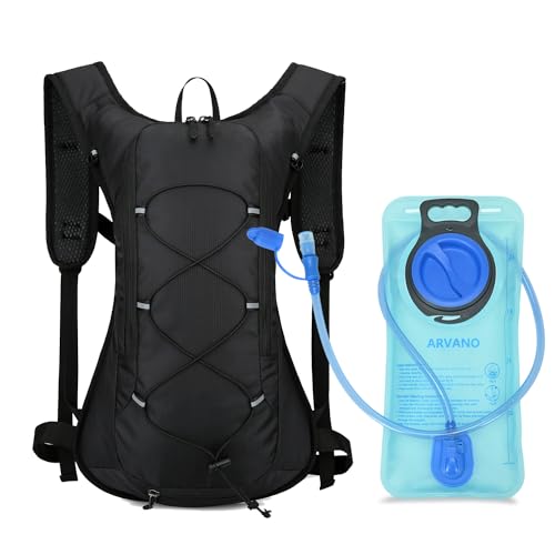 Arvano Hydreringsryggsäck med 2L vattenblåsa,Lätt cykelryggsäck för löpning skidåkning vandring cykling,Liten vattenryggsäck för män kvinnor (Svart, En Storlek)