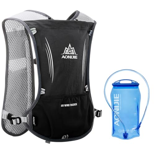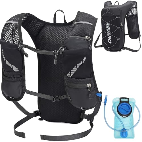 Arvano Löparväst Löparryggsäck med 1,5 liters vattenblåsa, lätt, andningsbar, 5L Hydreringspaket för Trail Löpning Maraton Cykling (Svart, En storlek)