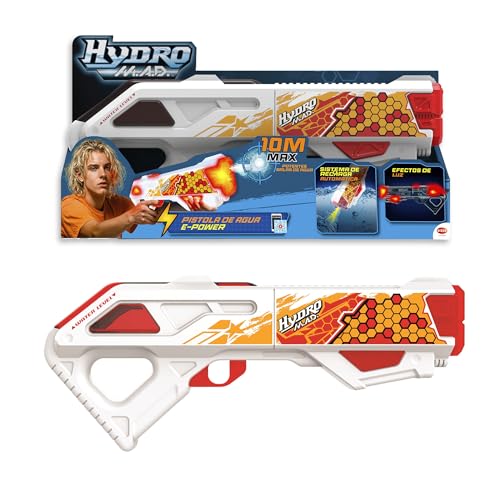 Bizak Hydro Mad vit och röd, elektrisk vattenblaster med automatisk uppladdning, räckvidd upp till 10 m och ljuseffekter, uppladdningsbart batteri, för barn från 8 år (62001150-2)