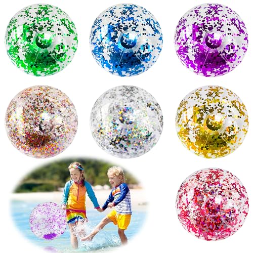 7 stycken vattenboll uppblåsbar strandboll uppblåsbara glitter vattenbollar färgglad uppblåsbar bollset strandboll för sommaraktiviteter utomhus, vattenlekar, pool och strandfest