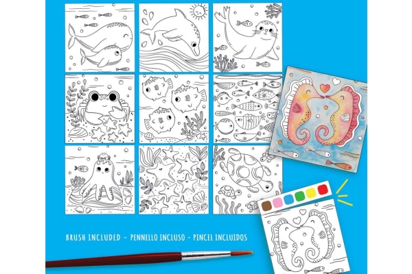 Aktivitetsbok Med Havets Djur, Vattenfärger & Pensel