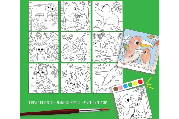 Aktivitetsbok Med Djurmotiv, Vattenfärger & Pensel