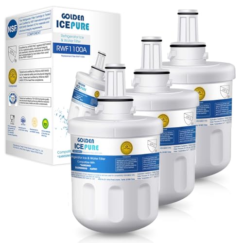 GOLDEN ICEPURE Kylskåp Vattenfilter Ersättning för Samsung DA29-00003F, DA29-00003G, Aqua Pure Plus Hafin, DA29-00003B, DA29-00003A, DA97-06317A, RFC1100A, 3 stycken RWF1100A (faktura finns)