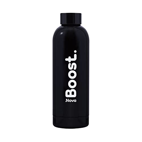 NovaBoost - Isolerad vattenflaska, 500 ml, isolerad flaska, varm 12 timmar/kall konservering, rostfritt stål, dubbelväggig, beige (svart glansig)