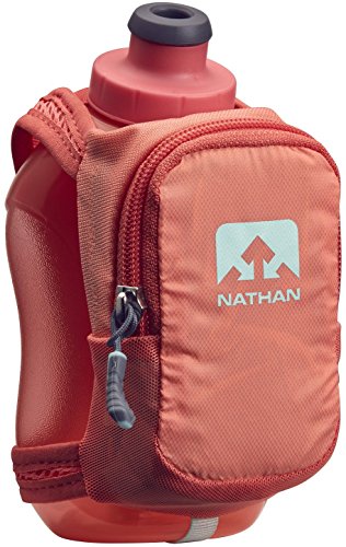 Nathan NS4859 Speedshot plus snabbgrepp 12 oz löpning vattenflaska flaska med dragkedja ficka, blå strålning Fusion Coral 12 oz