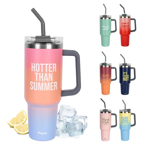 Fisura – Isolerad vattenflaska 1,2 l ”hotter than last summer”. Rosa termoflaska i rostfritt stål. Behåller kyla i 24h och värme i 12h. BPA-fri. Praktiskt sugrör ingår. Storlek: 9,8 cm x 27,8 cm.