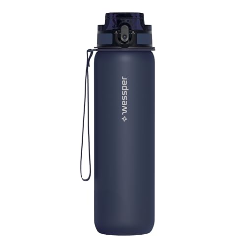 WESSPER Vattenflaska 1 l Active Max, Tritan sportflaska med tidsmarkering BPA-fri, läckagesäker vattenflaska för sport cykel, vandring, skola, barn – blå
