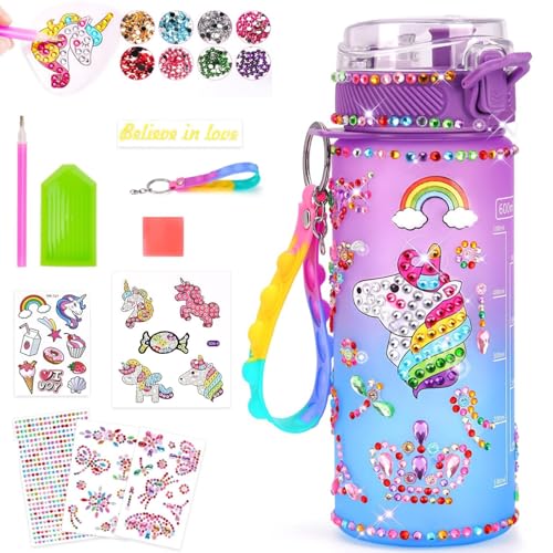 JoyJoyful Gåva för flickor 5 6 7 8 9 10 år, 600 ml Enhörning Vattenflaska Spel för flickor 4–10 år gammal kvinna, diamantmålningssats för barn, födelsedagspresent för flickor 11 12 år