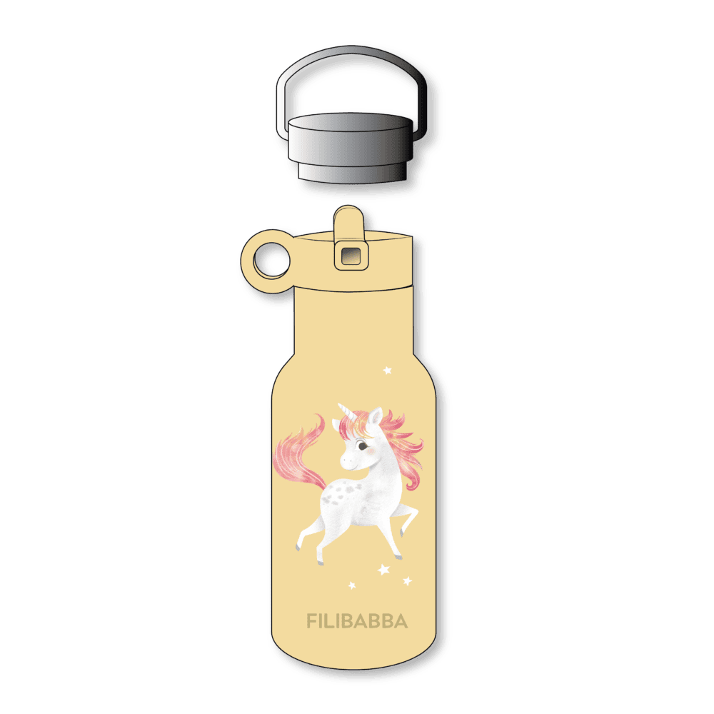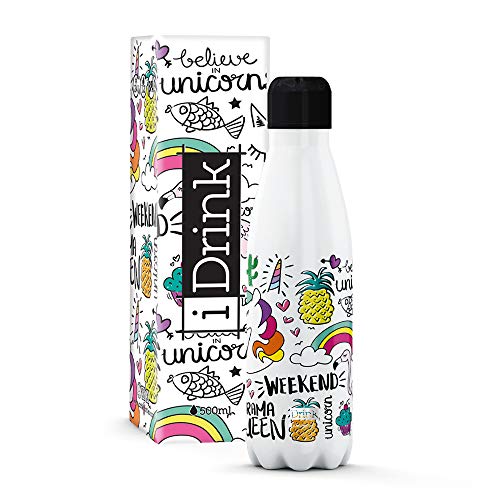 I-Drink 350 ml dubbelväggig termisk vattenflaska i stål, läckagesäker, BPA-fri, RI01 (1 enhörning)