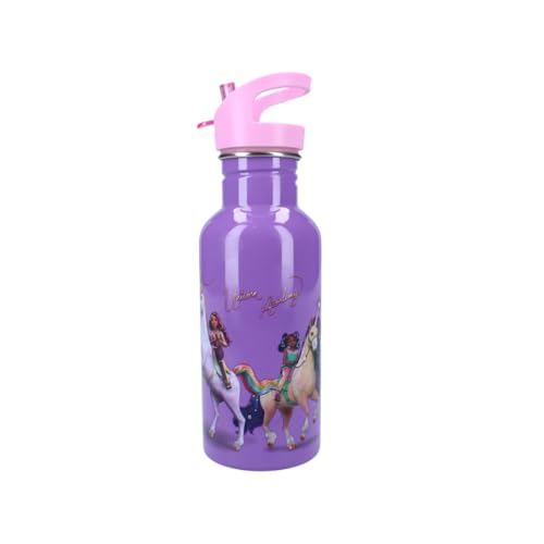 My sweety pop Vattenflaska för barn, rostfritt stål, 500 ml, 22 cm, för förskola, skola, semester, måltider, presentidé (Unicorn Academy – lila)