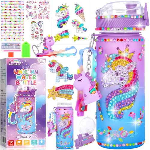HuaMuDM Enhörning presenter för flickor presentidéer, vattenflaska pysselset vattenflaska pysselset gåvor gör-det-själv, enhörning gör-det-själv vattenflaska för flickor presentidéer
