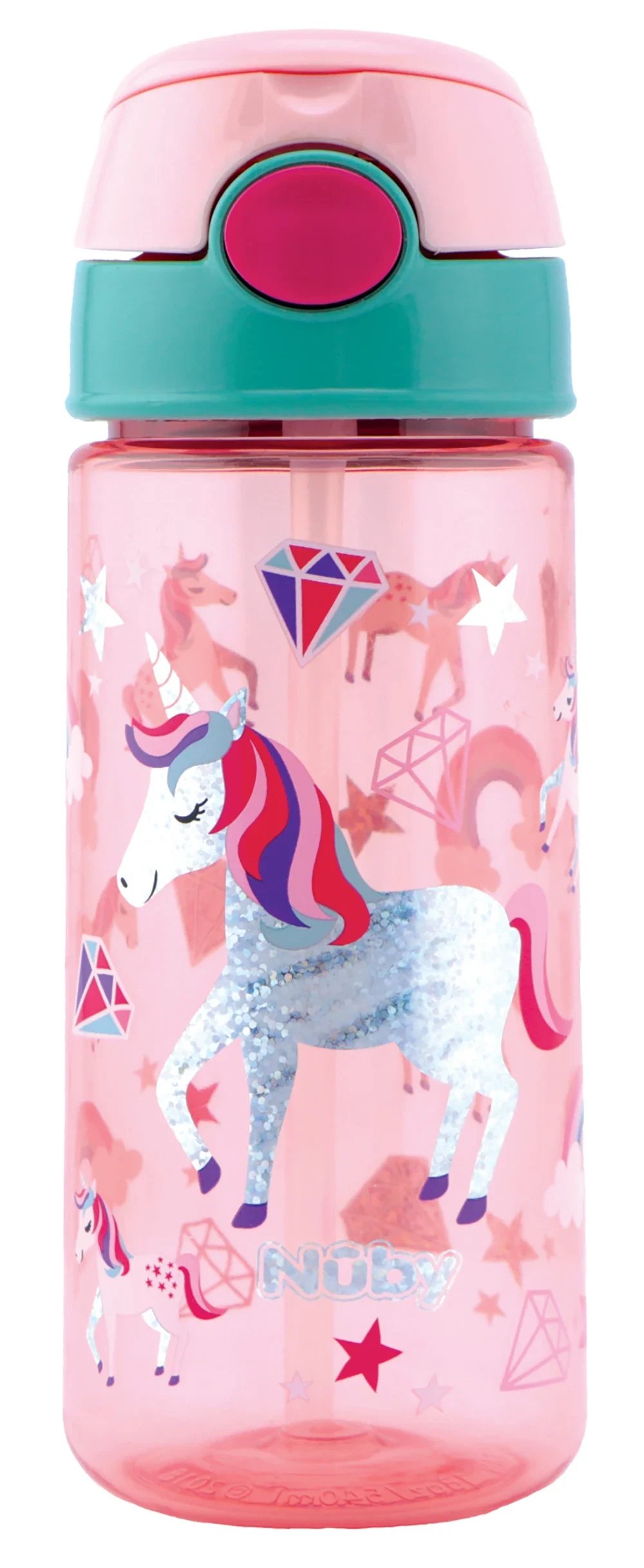 Nuby Flaska Soft Straw Push Cup Glitter 540 ml Enhörning