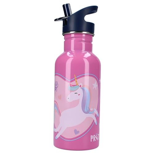 Flaska – rostfritt stål – enhörning för barn – dagis – skola – semester – måltid – 21 cm – för flickor – 500 ml – hydrering – presentidé