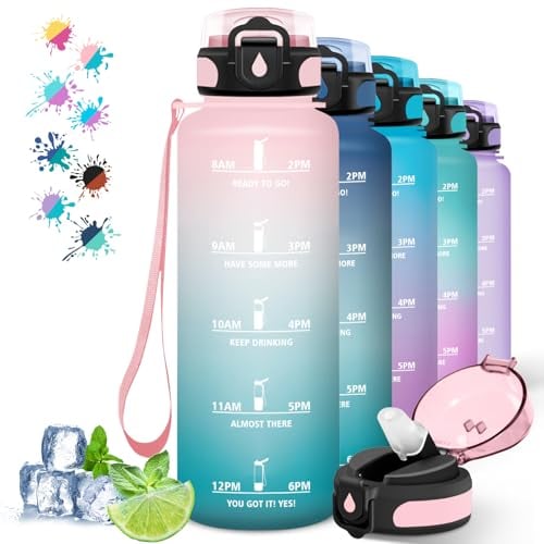 Grsta 1 liter, vattenflaska för gym, förlustfri, motiverande vattenflaska med tidsskala, flaska med sugrör, lätt att rengöra, flaska för sport, fitness, vandring, cykling