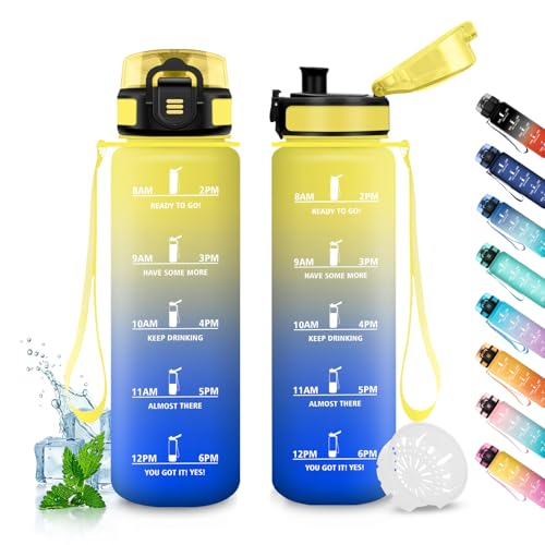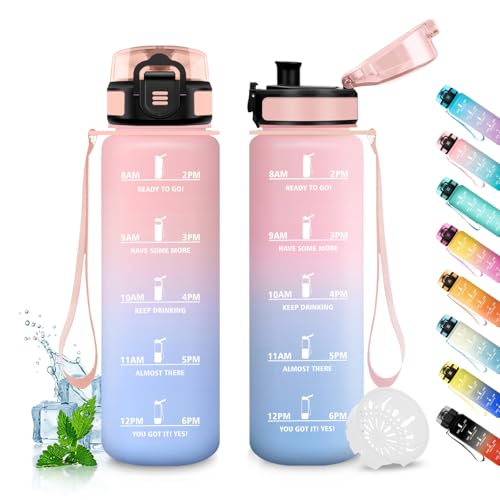 1 liter vattenflaska, läckagefri, motiverande vattenflaska med tidsskala, vattenflaska med filter, lätt att rengöra, flaska för sport, fitness, vandring, cykling, yoga