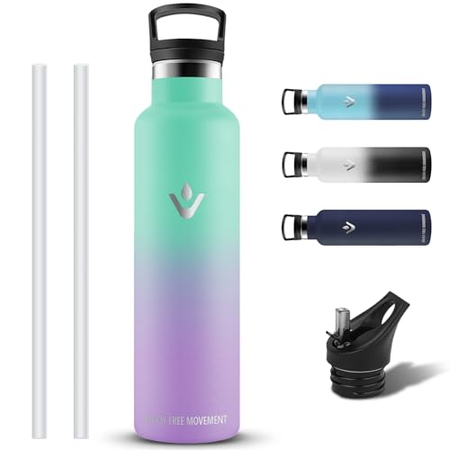 Volhoply Isolerade vattenflaskor med sugrör Bulk 2 Pack, 660ml Stainless Steel Sports Bottle med Handle Lid, Vacuum Metal Cup, Återanvändbar kall vattenflaska för vandring (Silver, 2 Set)