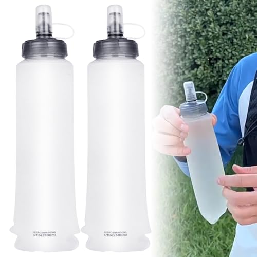 HOSPAOP Vikbar sportvattenflaska, 500 ml TPU vattenflaska mjuk flaska, ultralätt läckagesäker sportflaska, BPA-fri vattenflaska för drickryggsäck, cykel, vandring, camping, utomhus, 2 stycken
