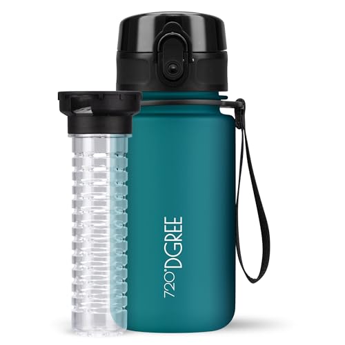 720°DGREE Vattenflaska 350 ml "uberBottle" +fruktinfusor, softTouch - BPA-fri, läckagesäker - flaska, vattenflaska perfekt för barn, skola, idrott, vandring, camping, universitet, resor, arbete