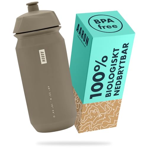 AARON ECO vattenflaska 100 % biologiskt nedbrytbar, 500 ml, lätt och läckagesäker, praktisk BPA-fri vattenflaska för sport, fitness, vandring, utomhus i beige