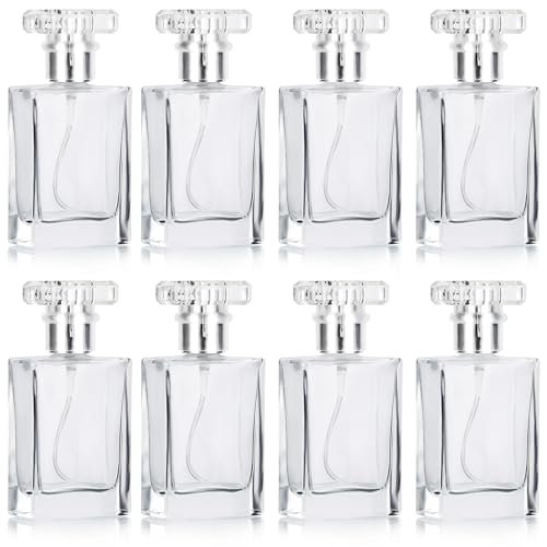 Belle Vous 30ml Tomma Påfyllningsbara Parfym Fördelare i Klart Glas Sprejflaskor (8 Pack) - Transparent Fyrkantig Flaska med Silver Dimpump – Bärbar för Resor, Oljor, Rakkräm & Rakvatten